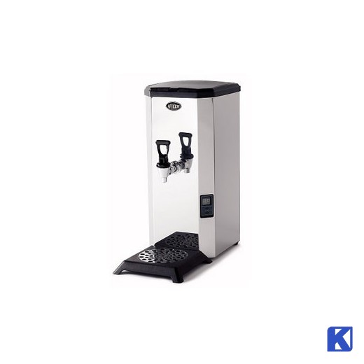 Coffee Queen Original Line Varmtvann (3 fas) 400V 6600W. Elektronisk varmtvannsautomat med automatisk eller manuell vannfylling. Digital display for temperatur. Ønsket tempereratur reguleres elektroniskt mellom 72-96°. 1,5 m tilkoblingsslange inngår. Tankvolum ca 7,5 liter vann. (240 mm mellom tappekran och spillbrett)